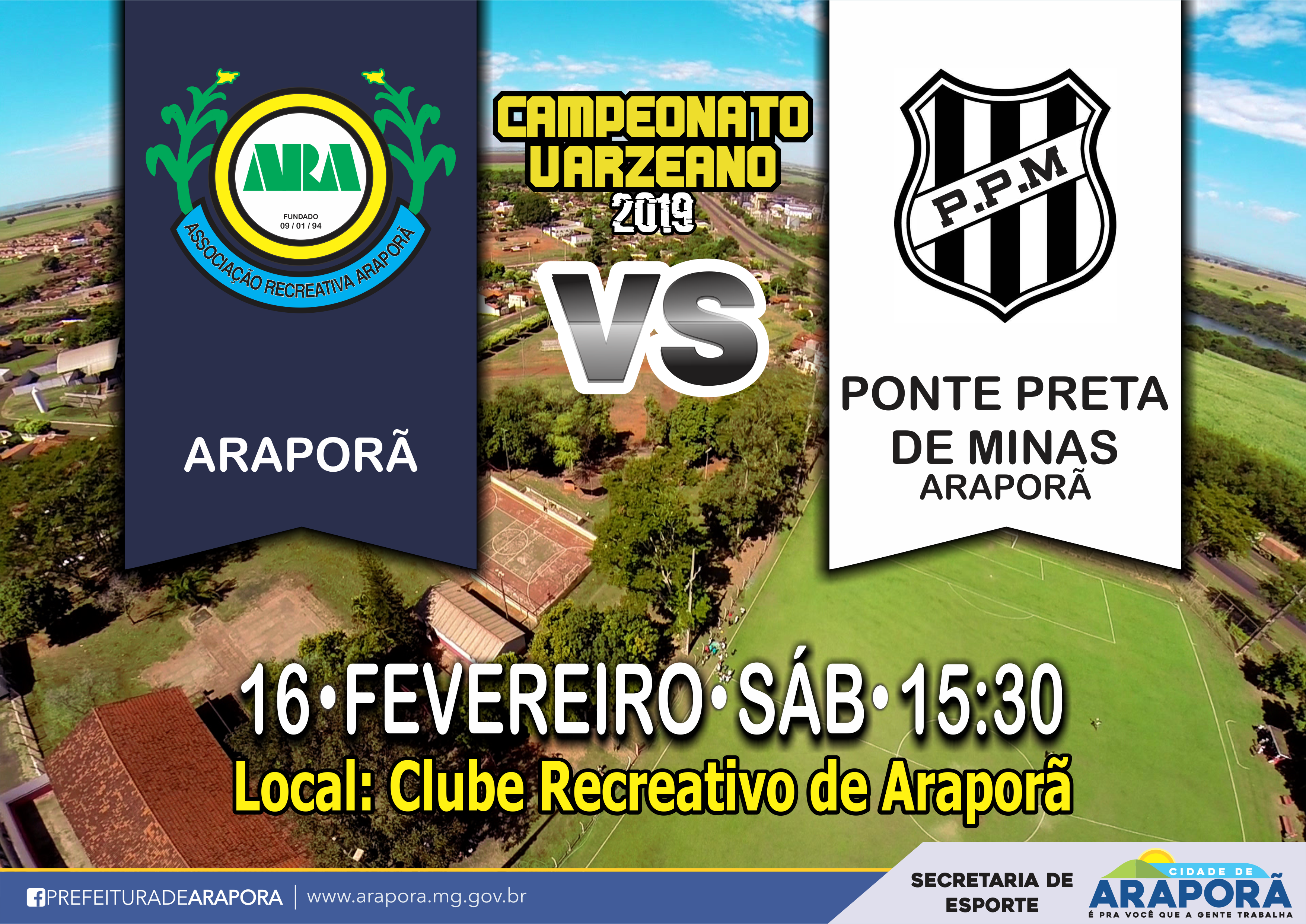 No próximo sábado (16) trinta e duas equipes darão o pontapé inicial ao Campeonato Varezeano organizado pela Liga Esportiva Itumbiarense e que conta com apoio da Secretaria da Juventude, Esporte e Lazer e realizado pela Prefeitura de Araporã. A abertura do evento esportivo vai acontecer às 15h30, no Parque do Peão João Luis Ferreira. O primeiro jogo será disputado entre duas equipes da cidade de Araporã: Associação Recreativa Araporã (ARA) e Ponte Preta de Minas.