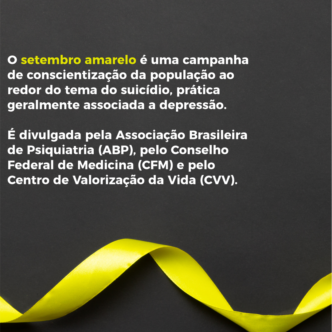 Cada pessoa tem um monstro interno que é difícil de enfrentar. Uns expõem com facilidade, outros camuflam de uma forma impenetrável. Não importa como cada um lida com seus problemas, é preciso ter respeito e exercer a empatia. A dor do outro pode não ser a sua, mas entenda que você também é suscetível a ter problemas. Ser gentil é o mínimo. Não espere o Setembro Amarelo para fazer a diferença na vida de alguém. Comece hoje mesmo a espalhar amor!