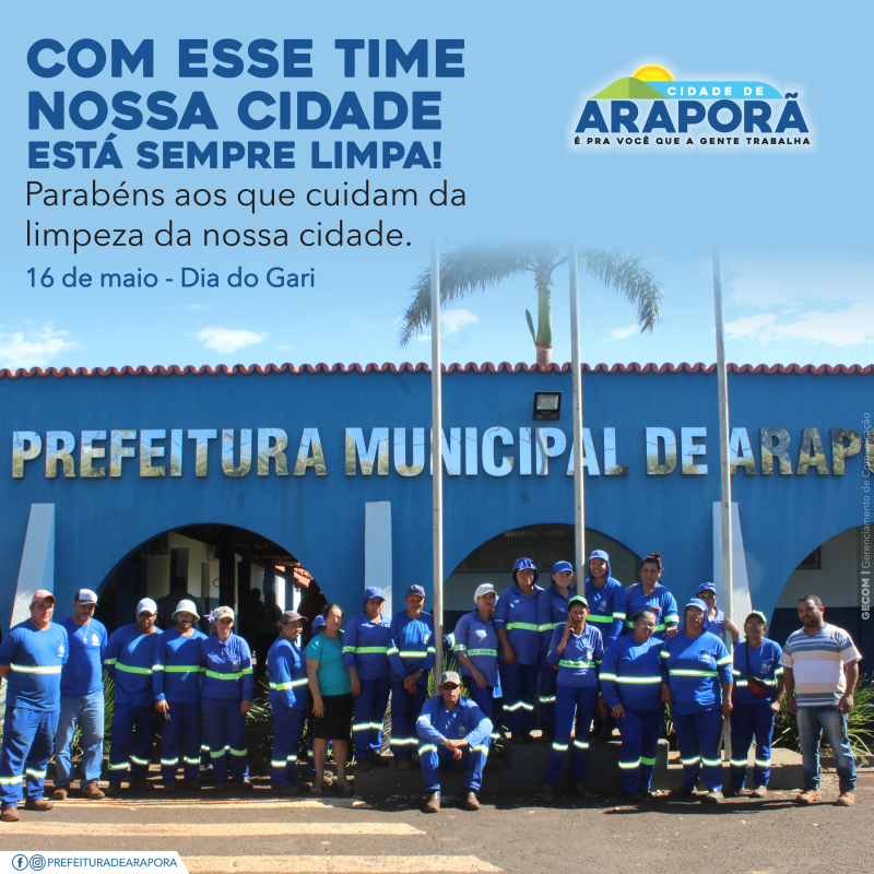 Somos gratos pelos serviços prestados por cada um. Vocês são importantes para a sociedade, que com muito empenho deixam nossa cidade mais limpa e bela. Dignos de respeito e reconhecimento, além de exemplos de cidadãos que exercem essa profissão tão importante dentro da sociedade.