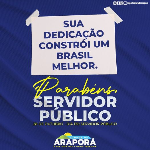 Diferentes uniformes, atuações e formas de trabalho. Mas todos com o mesmo propósito: servir! Parabéns a todos os servidores públicos de Araporã que, com dedicação, constroem uma Araporã melhor.