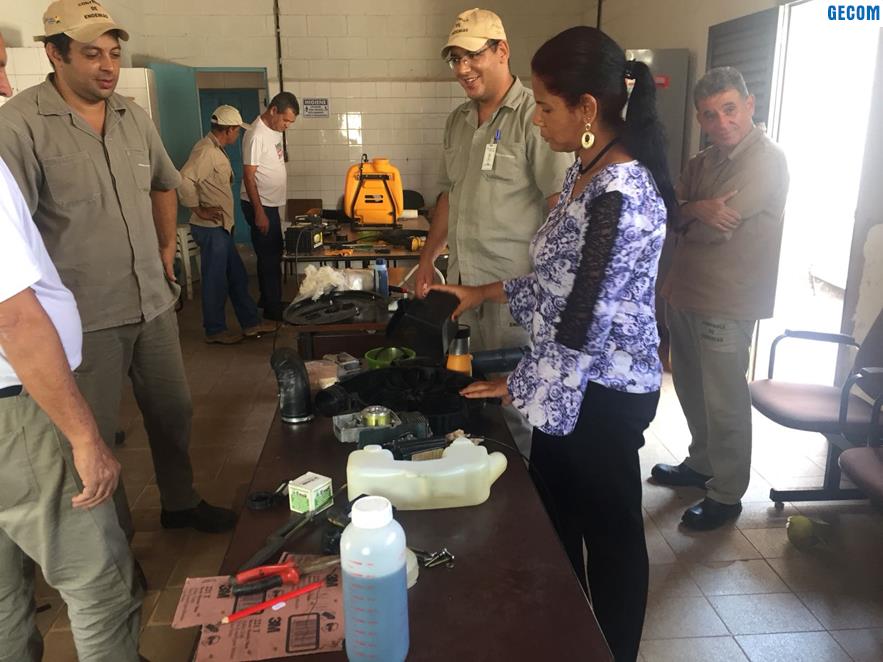 No cronograma o curso abordou técnicas de operação e campo, manutenção e conservação dos equipamentos, dentre eles a bomba costal motorizada e a montagem e desmontagem dos equipamentos.