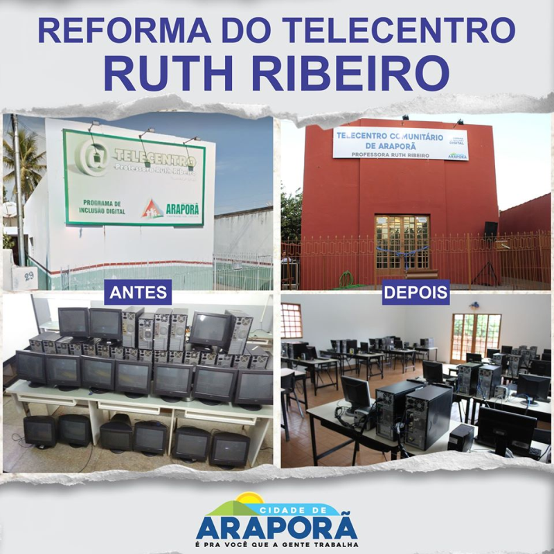 O Telecentro Ruth Ribeiro foi reaberto e reformado nesta gestão. O local contou com uma nova pintura, manutenção e aquisição de novas máquinas. Atende público de todas as idades, para a realização de pesquisas, impressão de documentos e cursos no campo da informática.