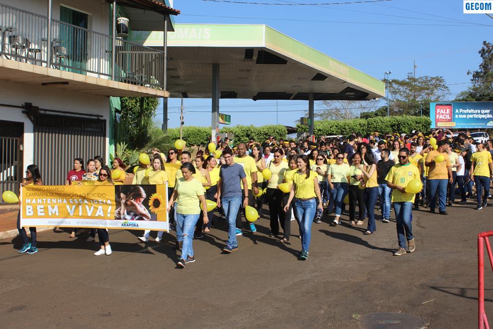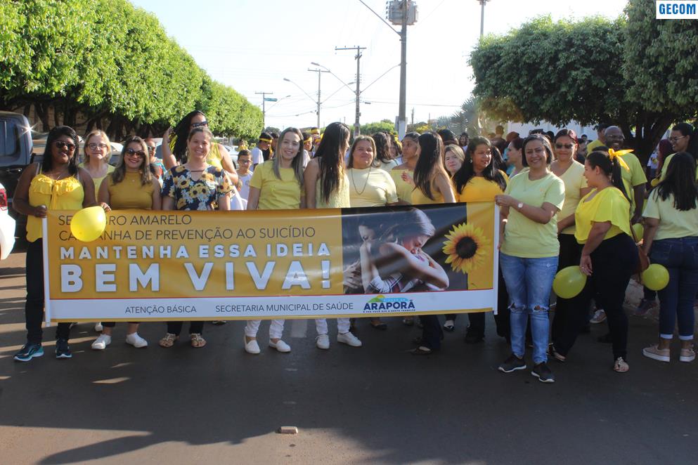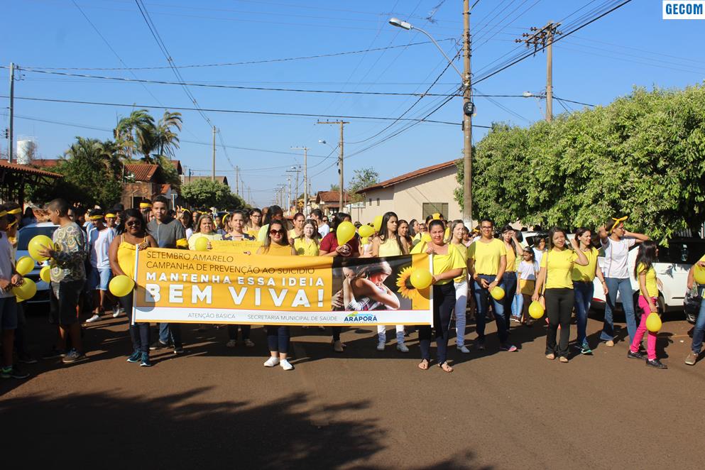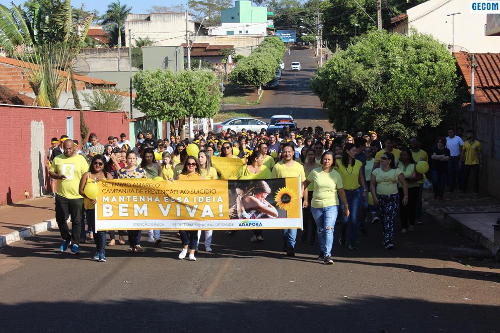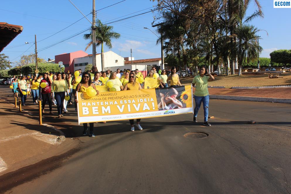Organizada pela Secretaria da Saúde e pela Atenção Básica da Saúde, aconteceu em Araporã na manhã de terça-feira (10) a 2ª Caminhada Pela Vida. Tendo como tema “Um abraço pela vida – Falar é a melhor solução”, a caminhada marcou a comemoração do Dia Mundial de Prevenção do suicídio e faz parte das atividades da campanha Setembro Amarelo. A caminhada contou com representantes de todos os setores da saúde, da educação e da prefeitura, totalizando a participação de aproximadamente 300 pessoas. O objetivo foi chamar a atenção da comunidade, alertando que o suicídio esse é um problema de saúde pública e consequência de vários fatores difíceis na história de vida da pessoa que opta por esse desfecho.