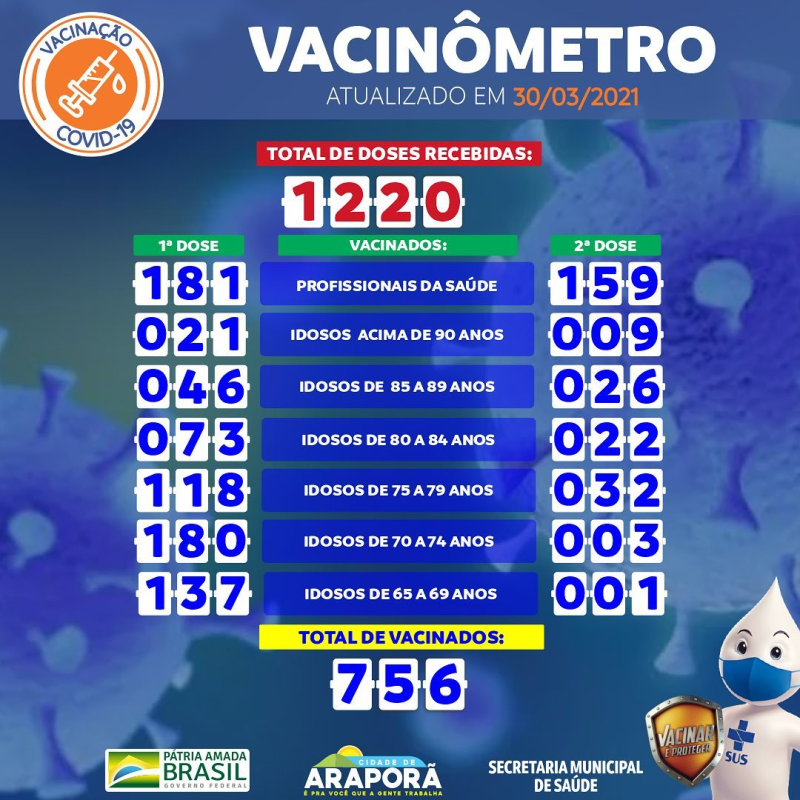 É motivo de alegria anunciar que a cidade de Araporã já tem 756 pessoas vacinadas, dentre profissionais da saúde e idosos.