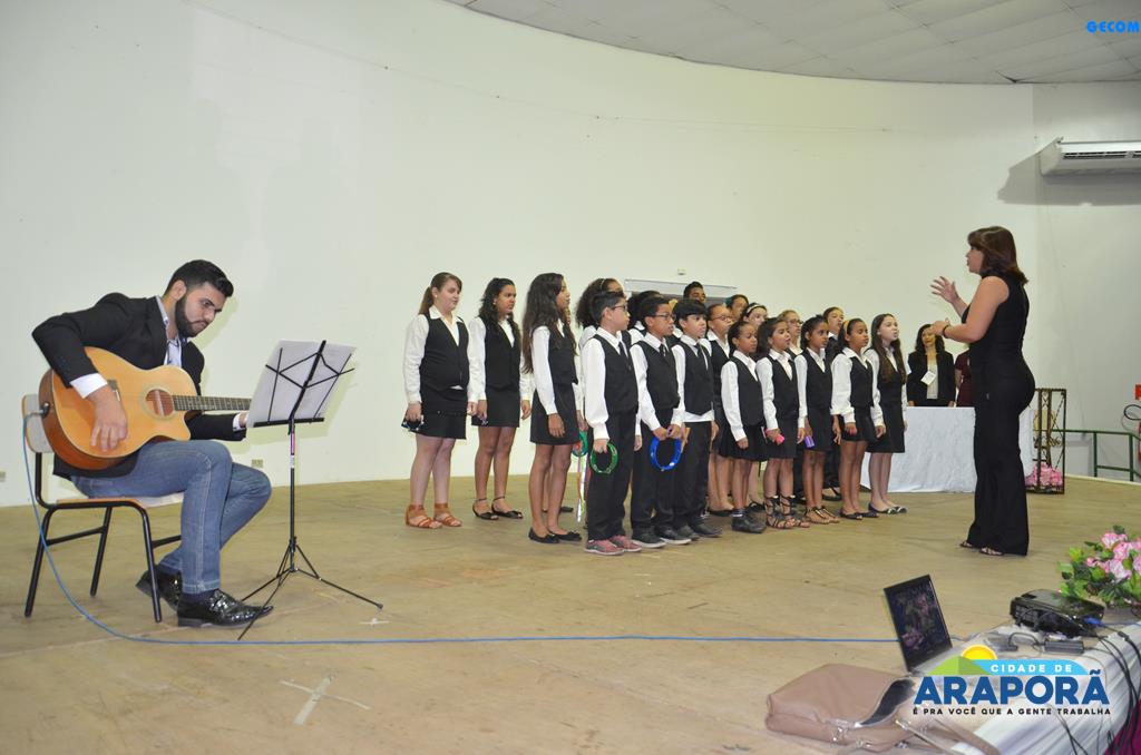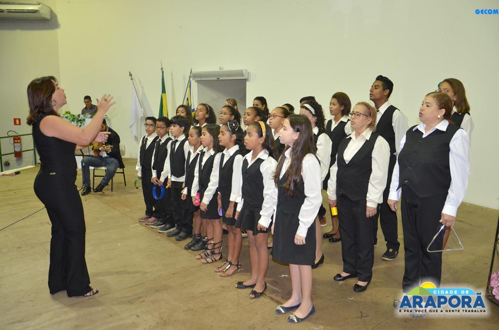 Alunos e professores do Espaço de Música Ermelindo Ferreira Oliveira participaram do momento cultural do evento. Além de executar o Hino Nacional, durante a abertura, o coral encantou o público com a apresentação da música “O Trenzinho do Caipira”. Os professores do espaço, Cristiano Faria e Neusa Raulino também entreteram a plateia com apresentações musicais. O Espaço de Música é um dos mais importantes projetos sociais desenvolvidos pela Secretaria da Ação Social e Prefeitura de Araporã.