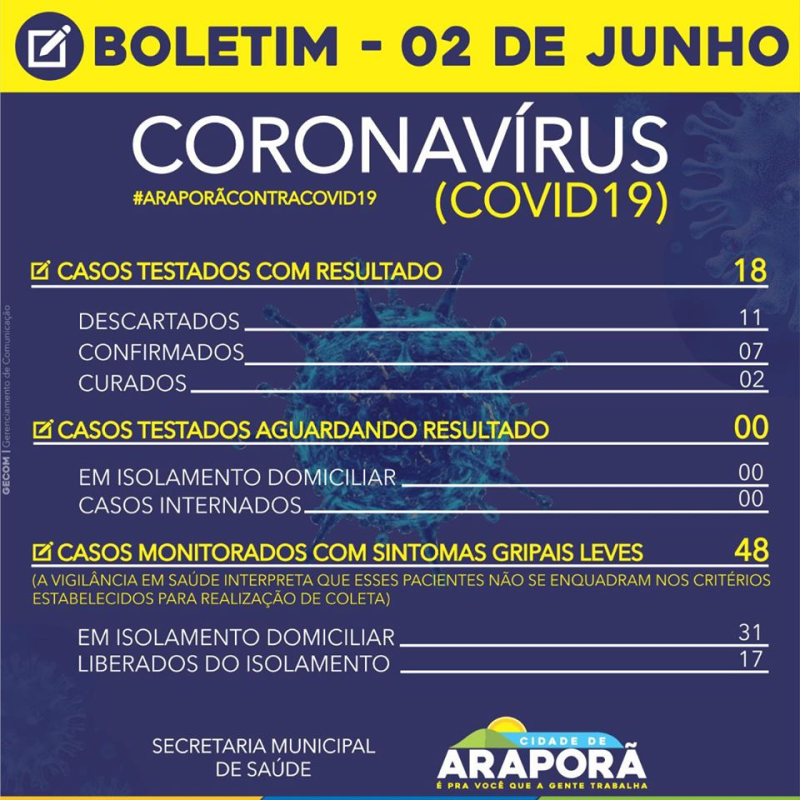 Confira atualização do boletim municipal desta terça-feira (02/06).