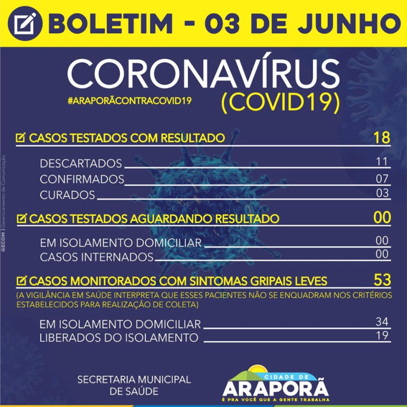 Confira atualização do boletim municipal desta quarta-feira (03/06).