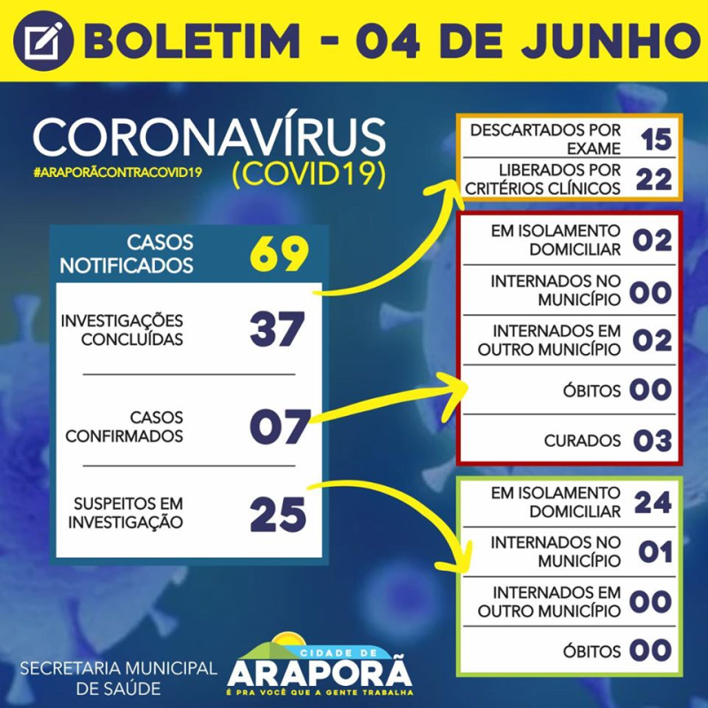Confira atualização do boletim municipal desta quinta-feira (04/06).