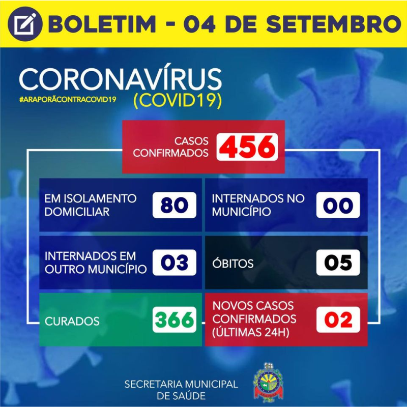 Confira a atualização do boletim municipal desta sexta-feira (04/09).