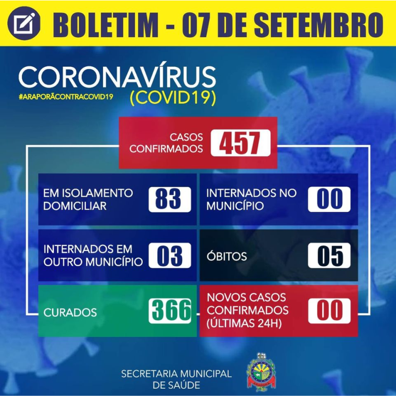 Confira a atualização do boletim municipal desta segunda-feira (07/09).