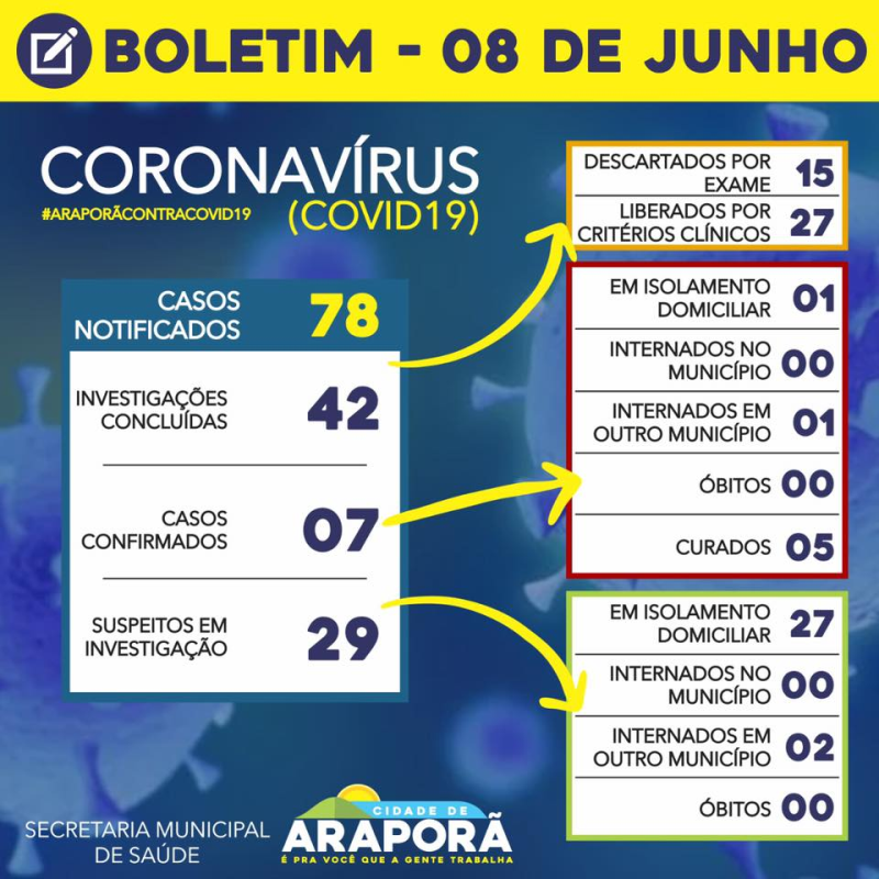 Confira atualização do boletim municipal desta segunda-feira (08/06).