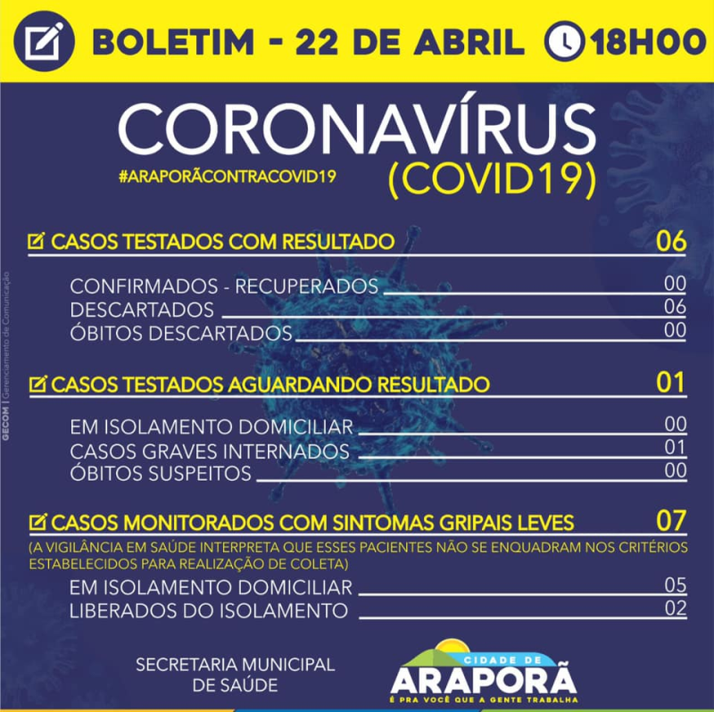 Confira atualização do boletim municipal desta quarta-feira (22/04).