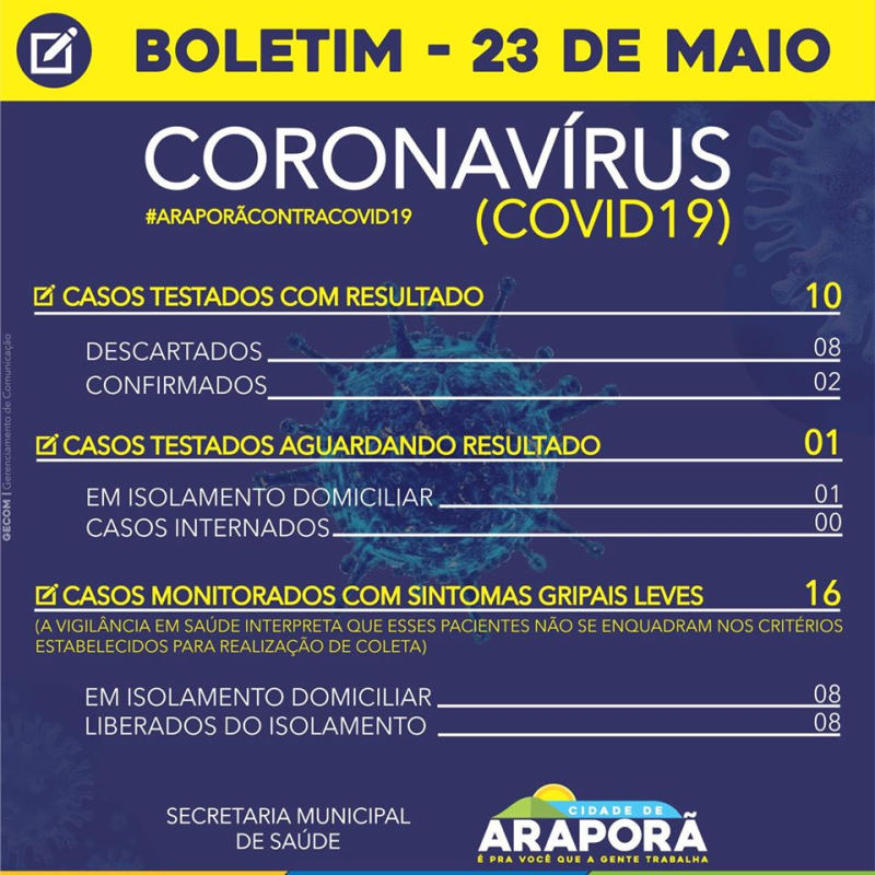 Confira atualização do boletim municipal deste sábado (23/05).