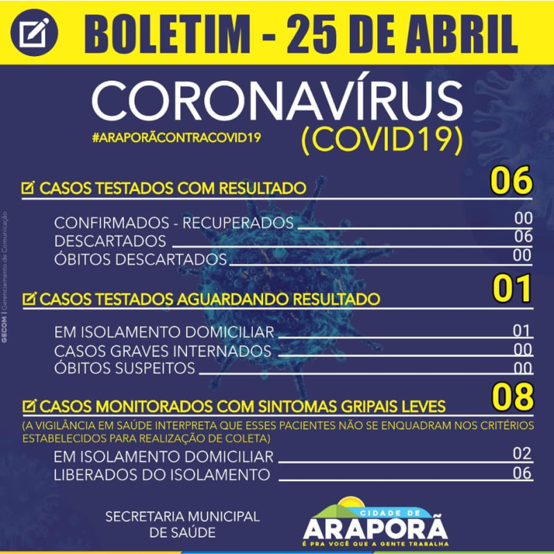 Imagem destaque notícia BOLETIM CORONAVÍRUS (25/04) - 18h