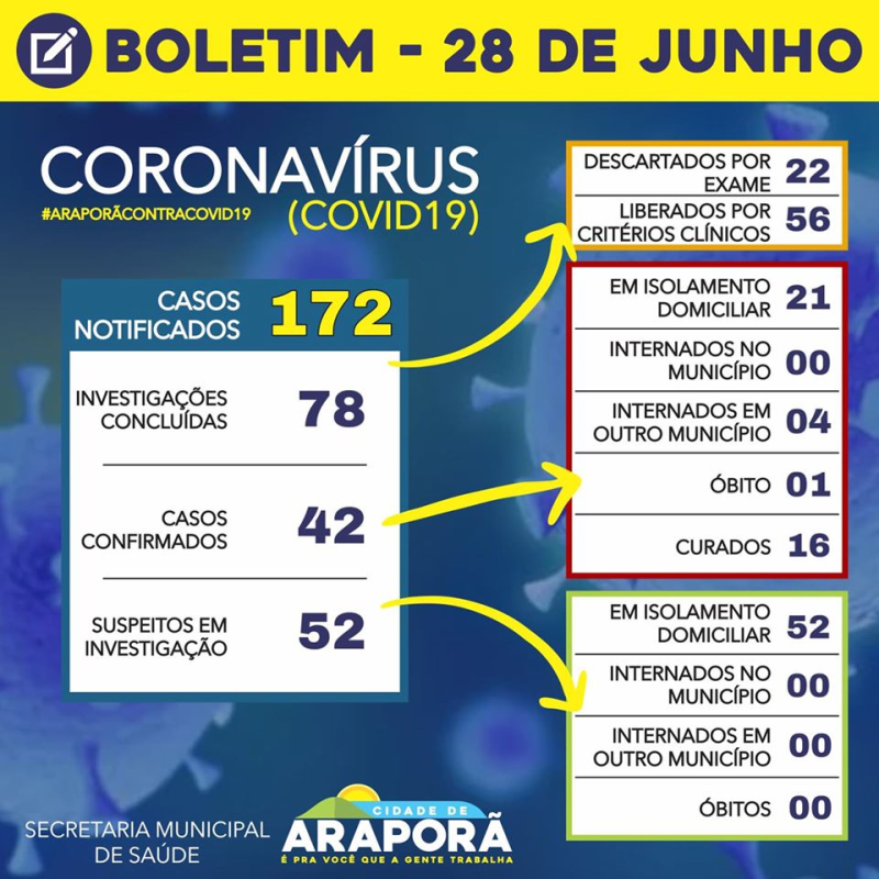 Confira atualização do boletim municipal deste domingo (28/06).