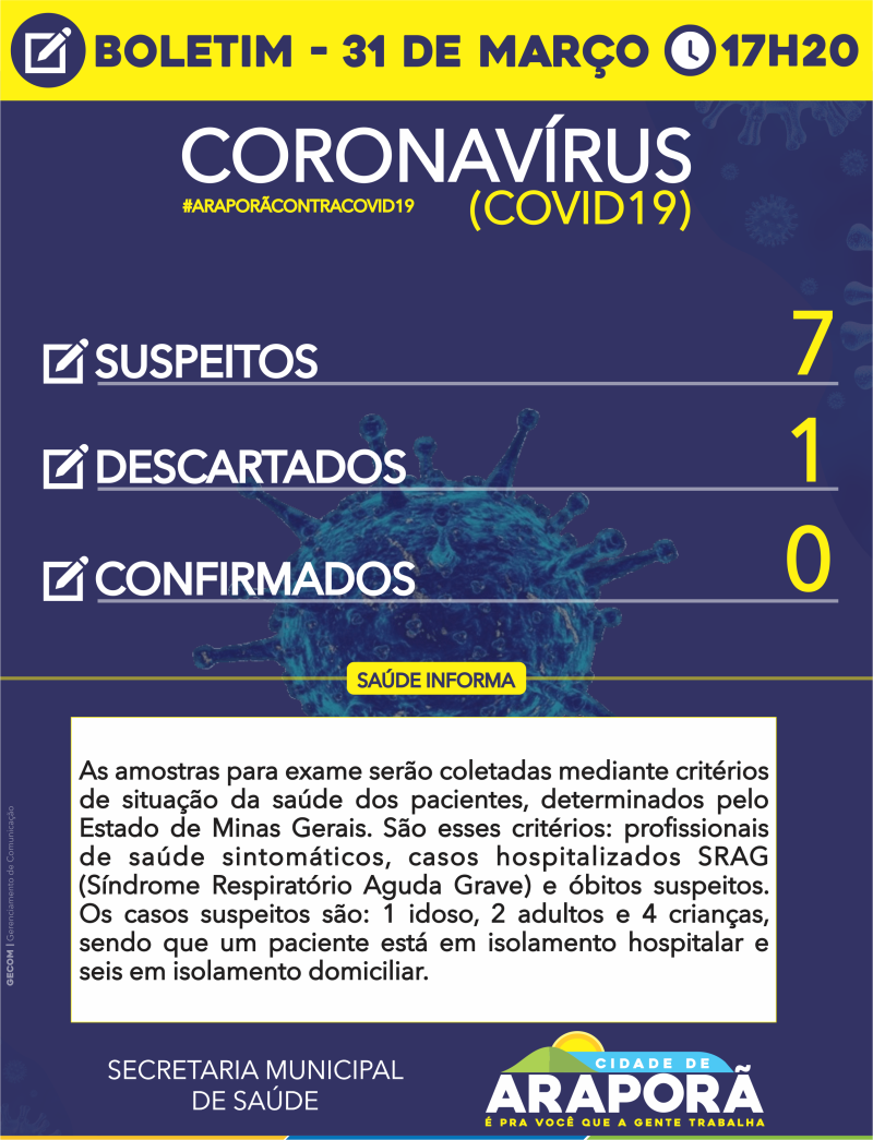 BOLETIM DIÁRIO DA SAÚDE – CORONAVÍRUS – 17:20
