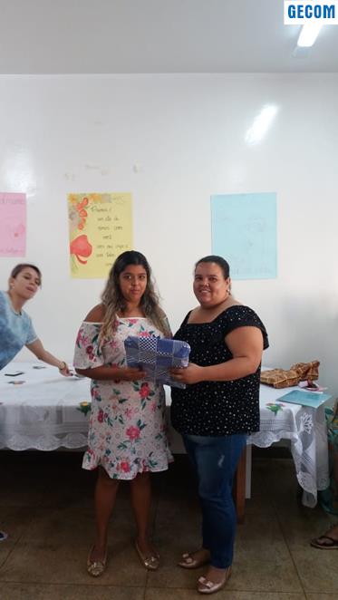 Ao final da reunião aconteceu sorteio de brindes doados pela Secretaria da Saúde. As gestantes e a equipe da saúde participaram de lanche de confraternização.