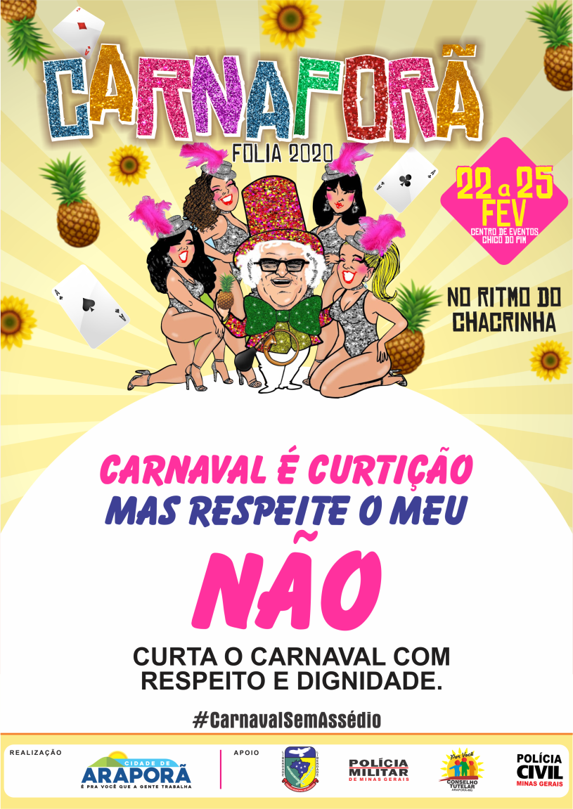 Brincar o carnaval faz parte da tradição brasileira e para conscientizar os foliões, a Prefeitura de Araporã, durante os dias da festa vai promover a publicação de posts, para conscientizar e informar a população para evitar o assédio e a importunação sexual durante os dias de Carnaval.