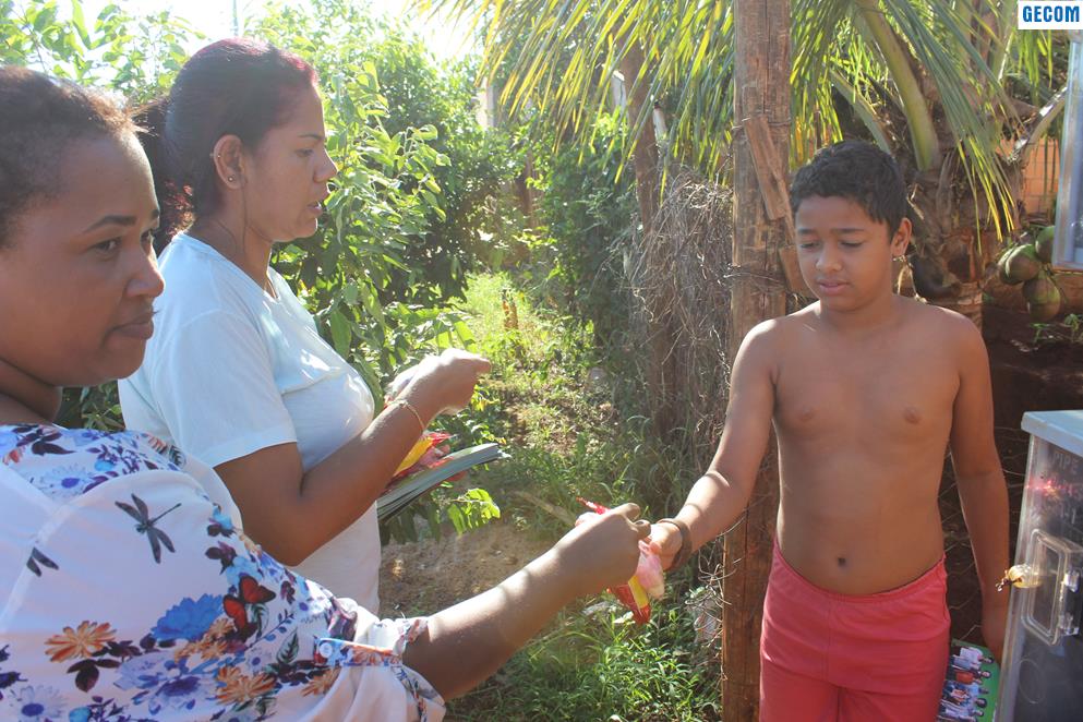 Além de pedir a colaboração da comunidade para manter limpos quintais e terrenos, eliminando todo o material e condição favorável para a proliferação do mosquito, a equipe de combate a endemias também presentou as crianças com pipocas, como forma de incentivo para que os pequenos também colaborem com a luta contra o aedes aegypti que transmite a dengue, o zika vírus e a chikungunya.