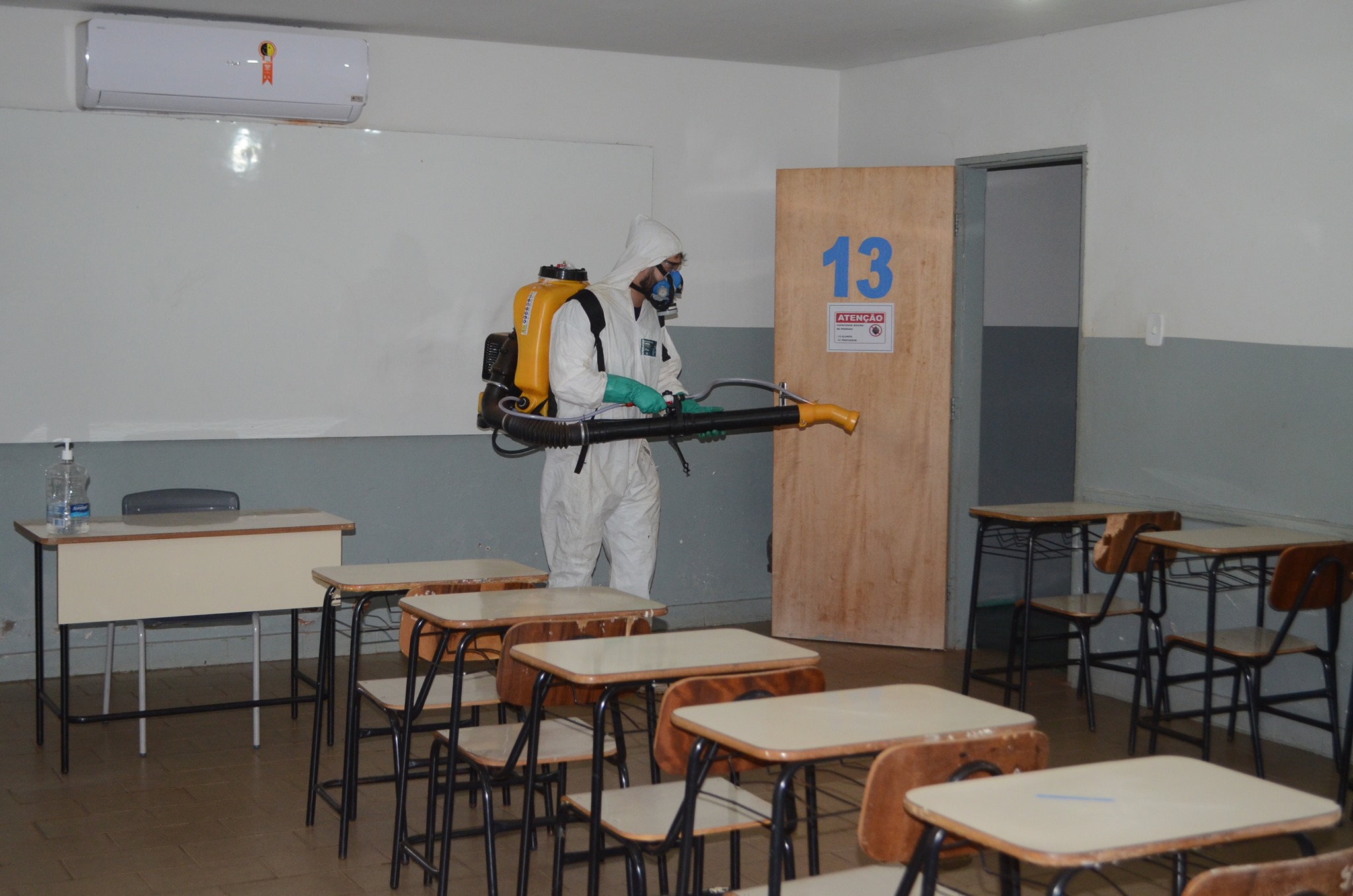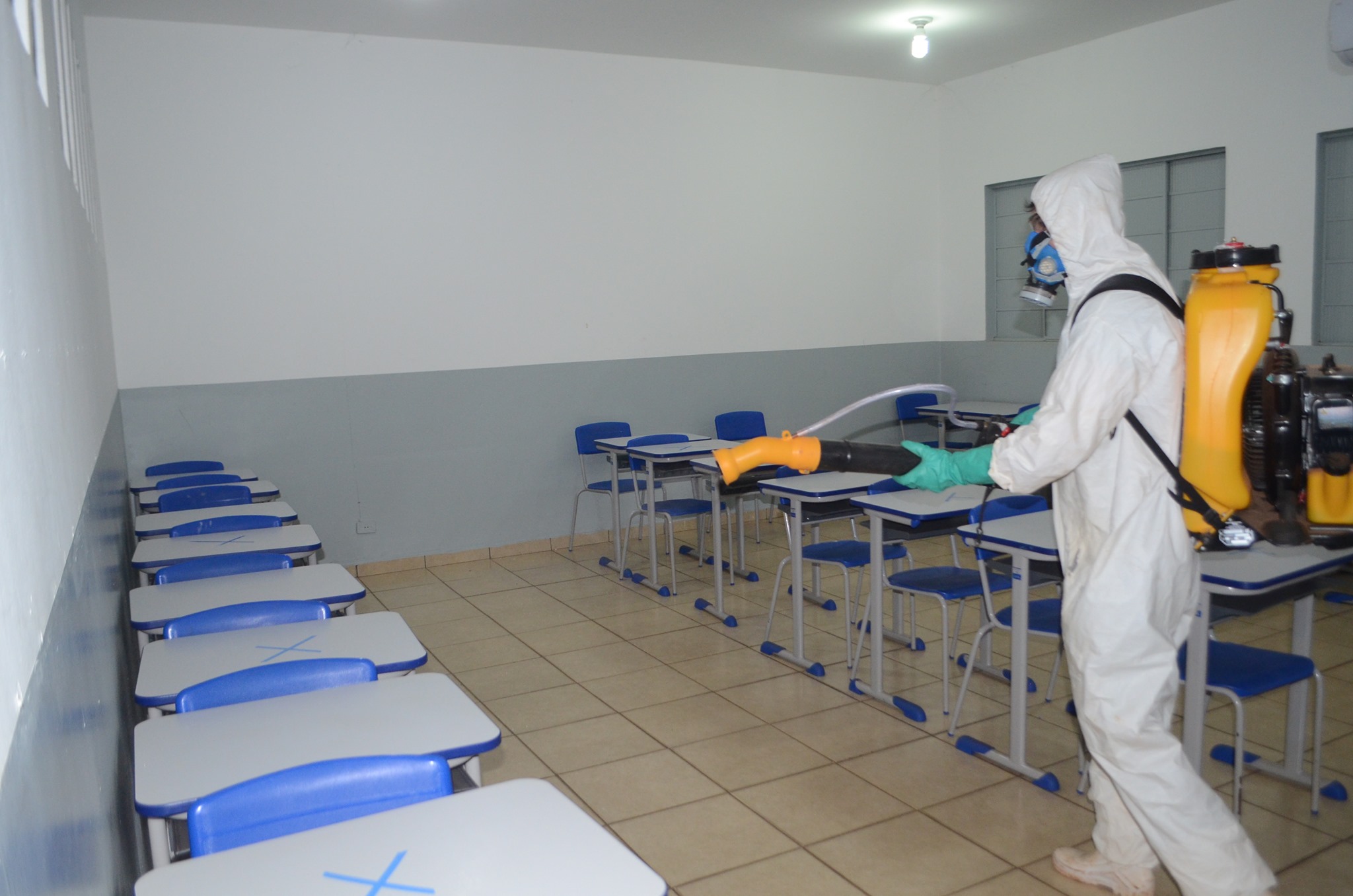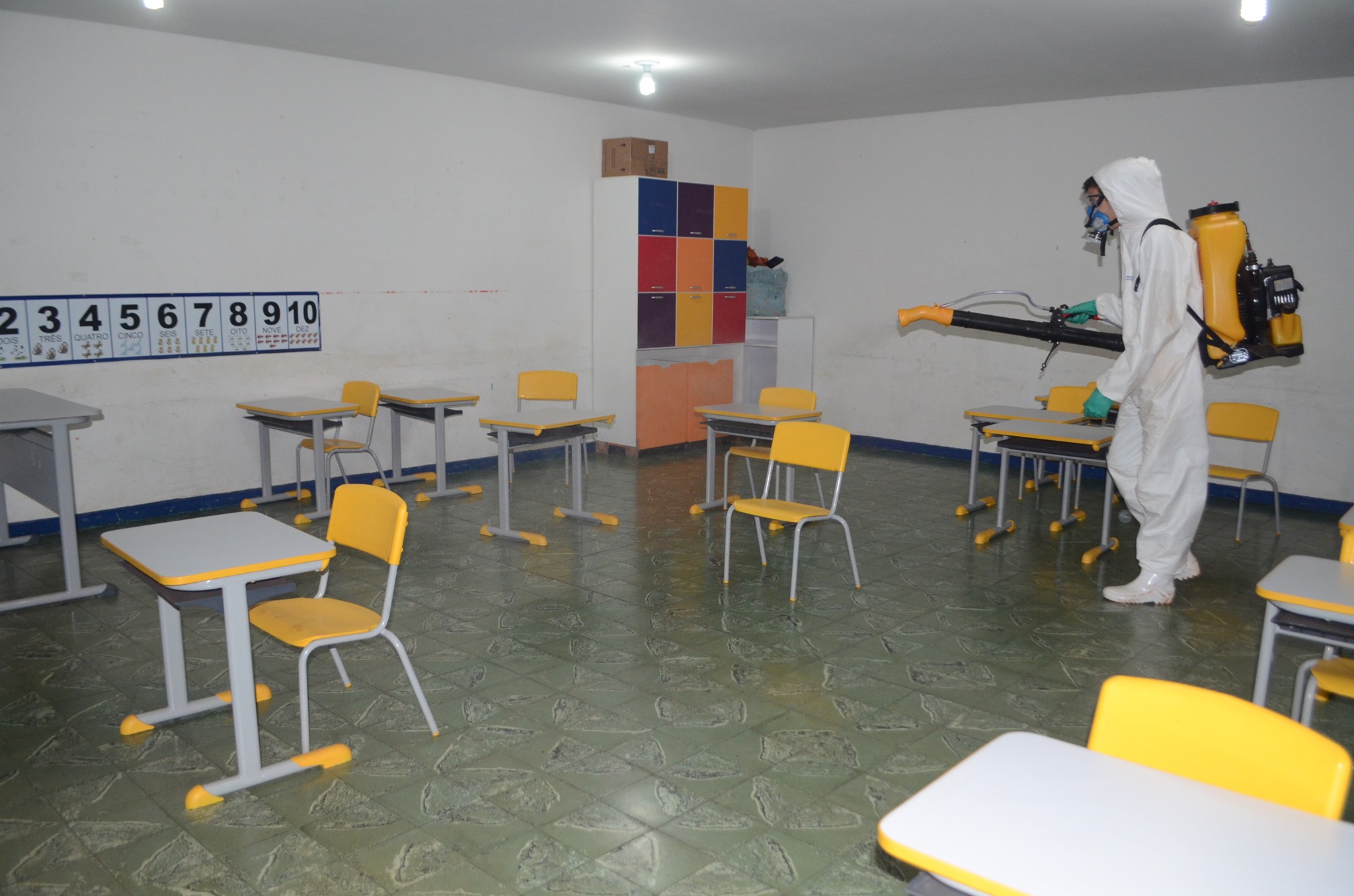 Passaram por essa assepsia as escolas Lápis de Cor (que atende alunos de Pré-Escola I e II), Prefeito Wilmar Alves de Oliveira (Ensino Fundamental I) e Olintha de Oliveira Vale (Ensino Fundamental I e II). O prédio da Secretaria da Educação também passou pelo serviço de sanitização.