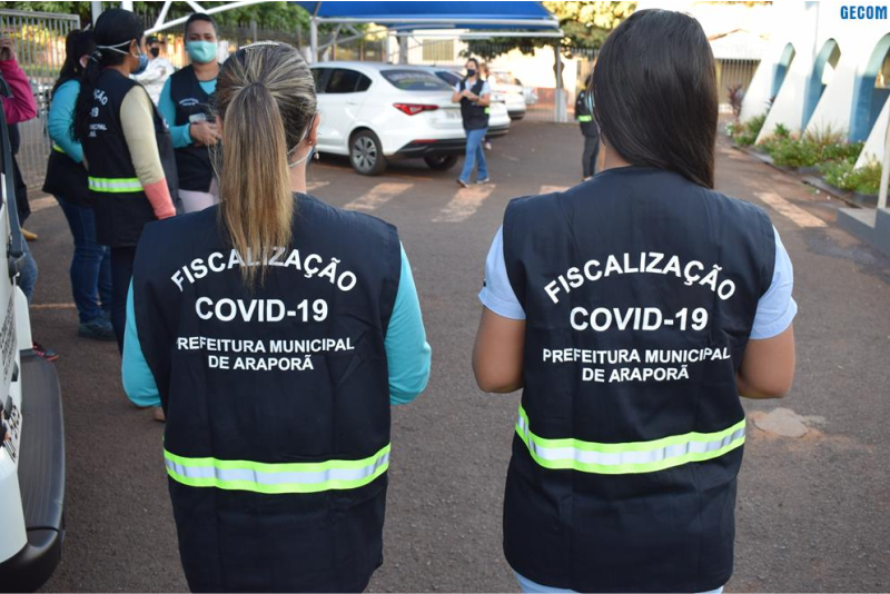 A cidade de Araporã, terá nos próximos 15 dias, uma mega força-tarefa de fiscalização das medidas de proteção contra a COVID-19. Mais de 50 fiscais identificados com coletes da operação, estão atuando nas ruas da cidade, realizando abordagem e levando orientações em comércios e residências em todos os bairros.