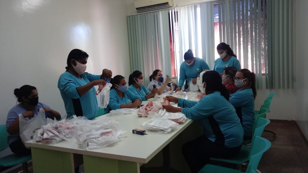 Os funcionários da prefeitura que fazem atendimento direto ao público também estão recebendo as máscaras confeccionadas pelas costureiras do CRAS e voluntários.