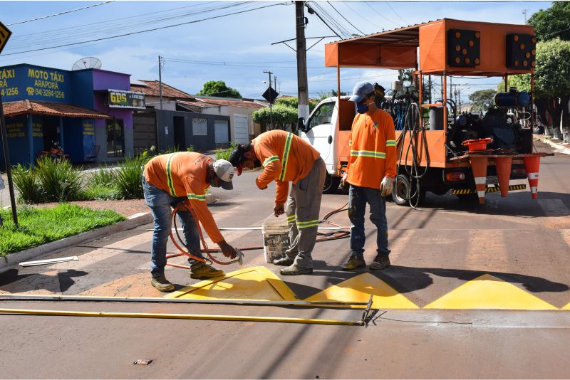 A Prefeitura de Araporã, iniciou ontem, 16, o reforço na sinalização horizontal de ruas e avenidas do município, a fim de garantir um trânsito seguro e organizado aos condutores, pedestres e ciclistas.