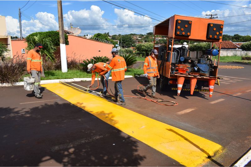 Os trabalhos de recuperação de sinalização realizados no município são: pintura de lombadas, faixas de parada obrigatória e pedestres, dentre outras marcações que organizam o trânsito. De acordo com a Prefeita, o serviço de manutenção e recuperação da sinalização horizontal segue um cronograma de atuação, priorizando o entorno de escolas e do hospital do município, além dos trechos com intenso fluxo de tráfego de veículos.