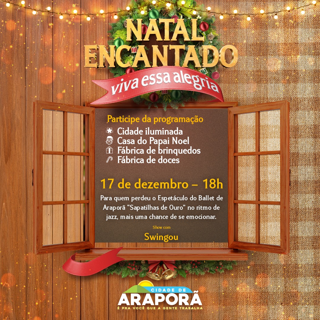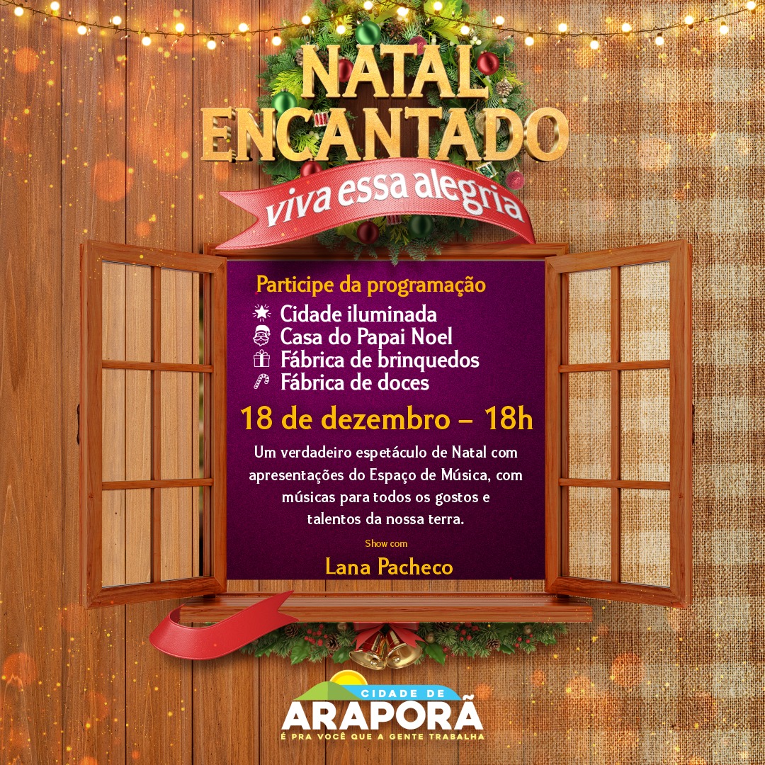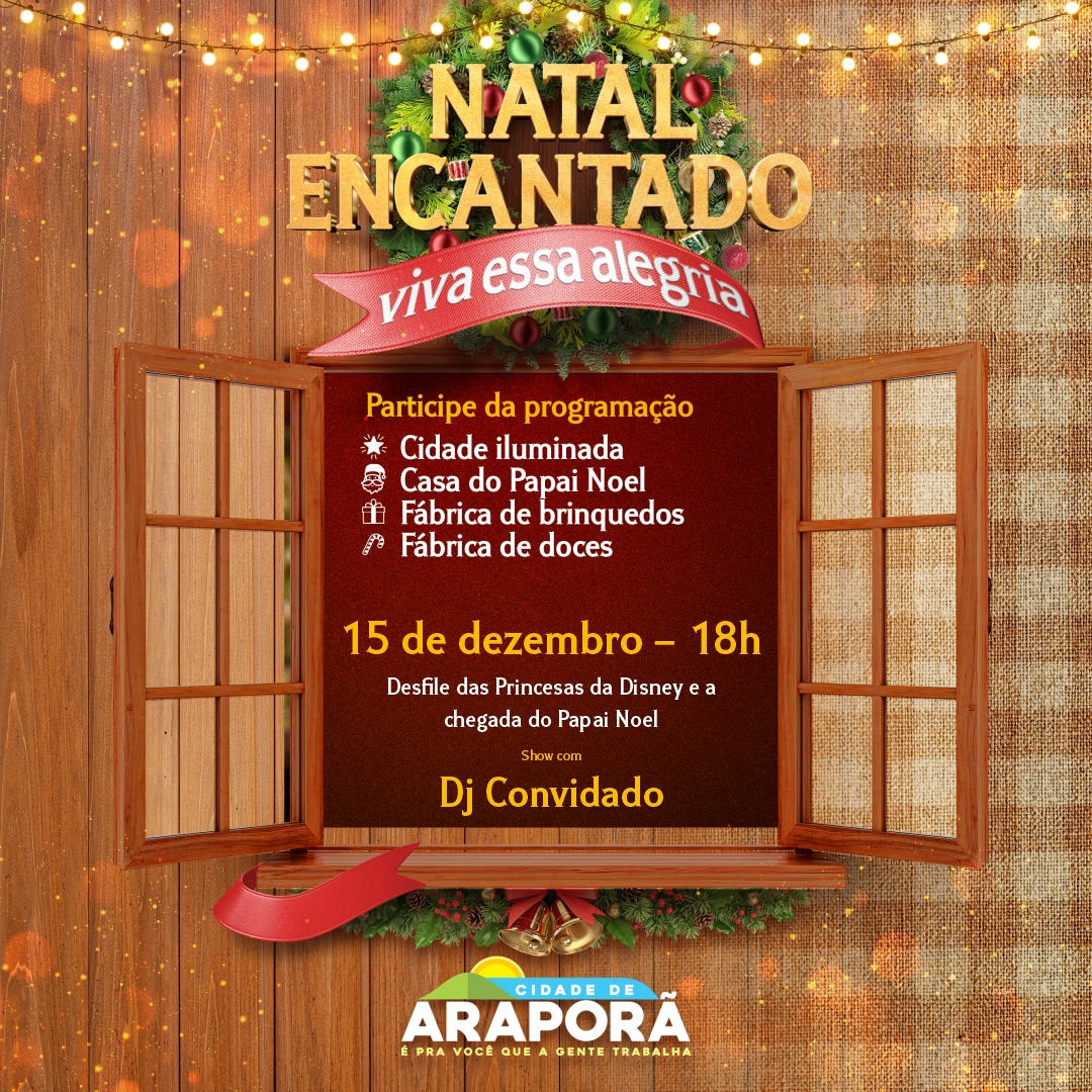 Além da decoração natalina impecável, o Natal Encantado de Araporã terá apresentações emocionantes e surpresas jamais vistas. Do MPB ao Pop, de ballet ao jazz, de desfiles de princesas até os mais terríveis vilões da Disney, é pra agradar todo mundo!
