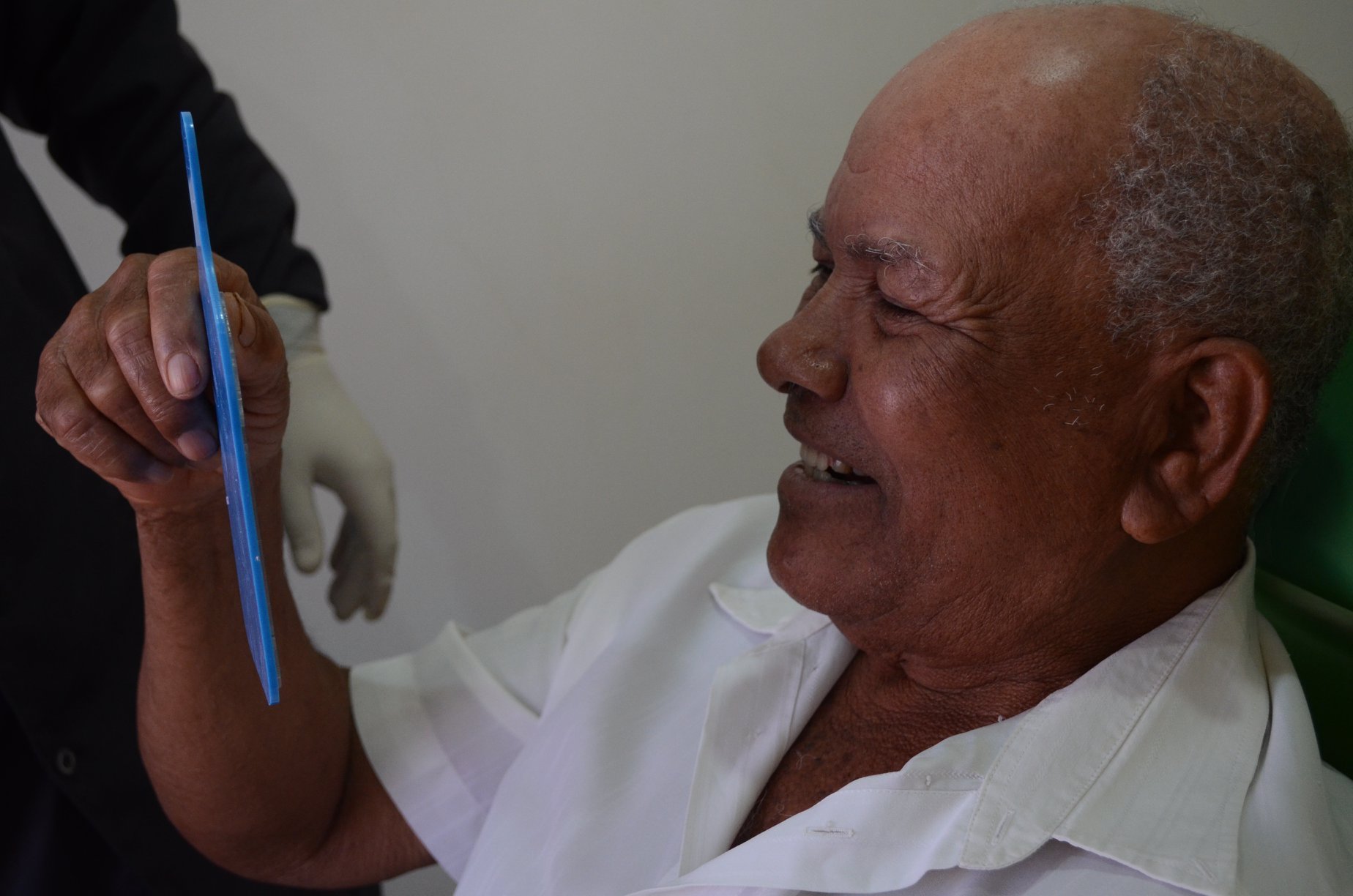 Depois de receber a prótese dentária, o paciente tem restabelecida a sua autoestima, além da função mastigatória e a alegria de voltar a sorrir.