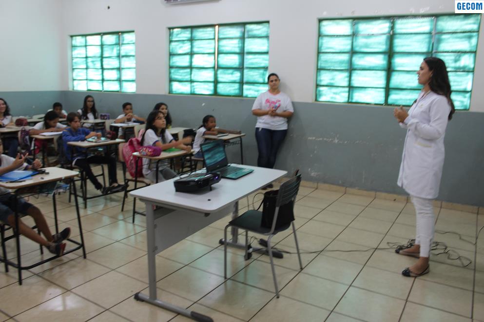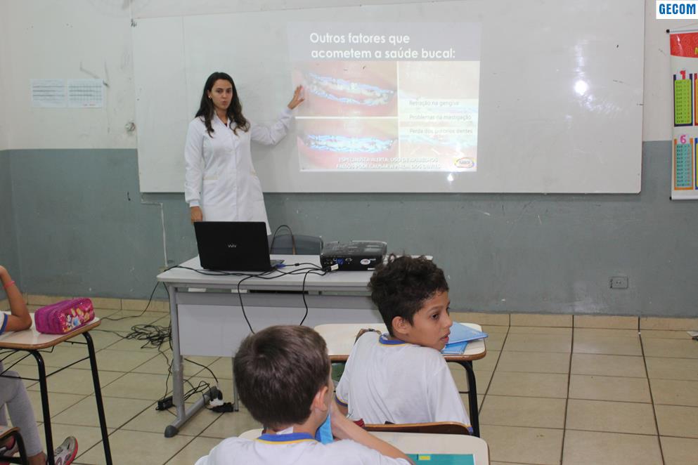 Ao final da apresentação, a profissional falou da estrutura de atendimento da rede pública. Além de estar presente nas escolas com palestras e orientações, a Saúde Bucal mantém atendimentos nos gabinetes odontológicos dos PSFS 1 e 3 (Centro) e PSF 2 (Bairro Alvorada).
