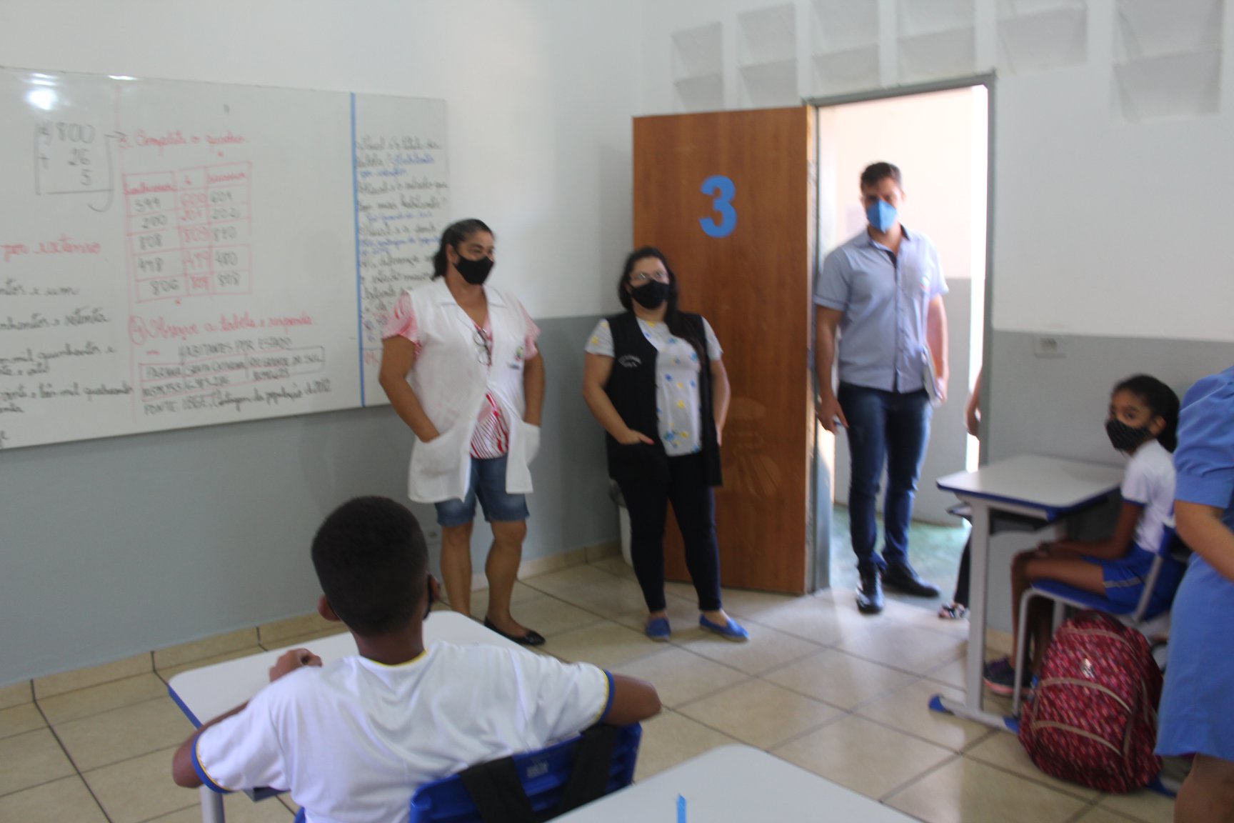 As aulas presenciais foram retomadas em três unidades do município: Escola Lápis de Cor (somente turma de pré II), Escola Prefeito Wilmar Alves de Oliveira (de 1º a 4º ano) e Escola Olintha de Oliveira Vale (de 5º a 9º ano).