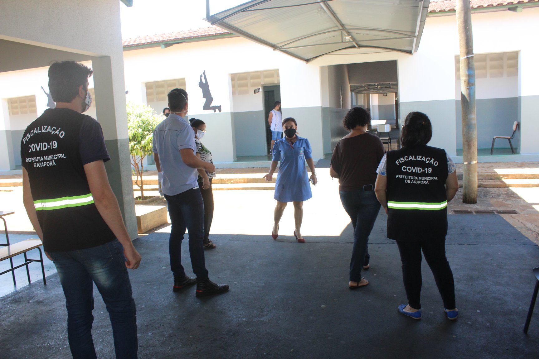 A Vigilância Sanitária e Epidemiológica (VISA) iniciou nessa semana vistoria e inspeção nas escolas da Rede Municipal de Ensino de Araporã que retomaram as aulas presenciais. A fiscalização é fundamentada nas Notas Técnicas de nº 17 e 89, da Secretaria Estadual da Saúde e tem por com objetivo orientar e conferir se estão sendo cumpridas as novas determinações do protocolo de saúde no que se refere à prevenção da covid-19, levando em consideração o Plano para a Volta às Aulas Presenciais.
